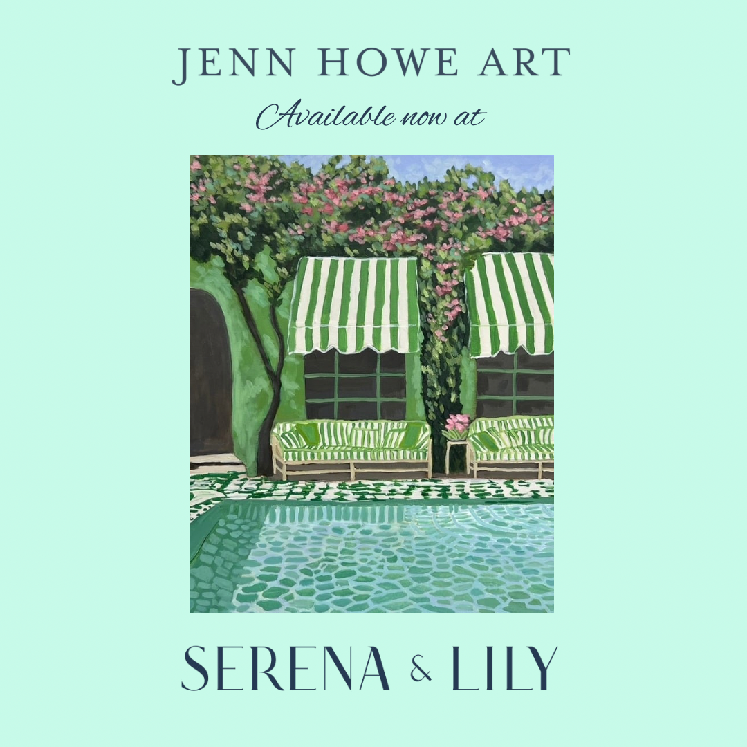 Jenn Howe is a featured art partner with Serena & Lily, a high end, coastal inspired home decor and lifestyle brand. A new collection drops the first of each month. You can find her original works in select stores.